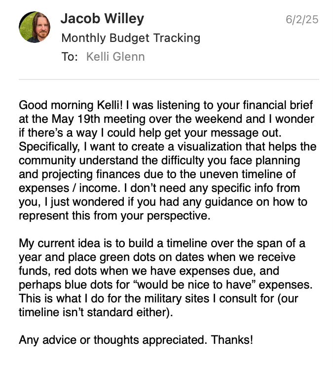 We may find that every budget problem traces back to the former DOO Kelli Glenn. Even if that were true, is it fair to rest all the blame on one person? If I handed my five year-old niece the keys to my car, is it all her fault when she plows it into my neighbor’s house? Kelli was clearly in over her head. People noticed, people spoke up, but it fell on deaf ears. At my company, we always say “process, not people” when it comes to blame. If the right process was in place, we’d have identified Kelli’s mismanagement and possibly prevented this mess.