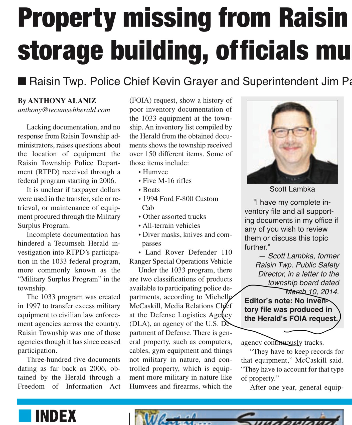 The board celebrated Sgt. Lambka, our school resource officer, as a part of national SRO day (2min in). There are still some unanswered questions concerning Sgt Lambka’s past dealings, however. Articles written on this issue are scarce, but fortunately a local journalist kept receipts. It centers around funds from the sale of military surplus that seems to have vanished. If Sgt. Lambka could not be transparent in a matter of missing funds he oversaw, is he the proper candidate to roam the schools or handle disciplinary measures?